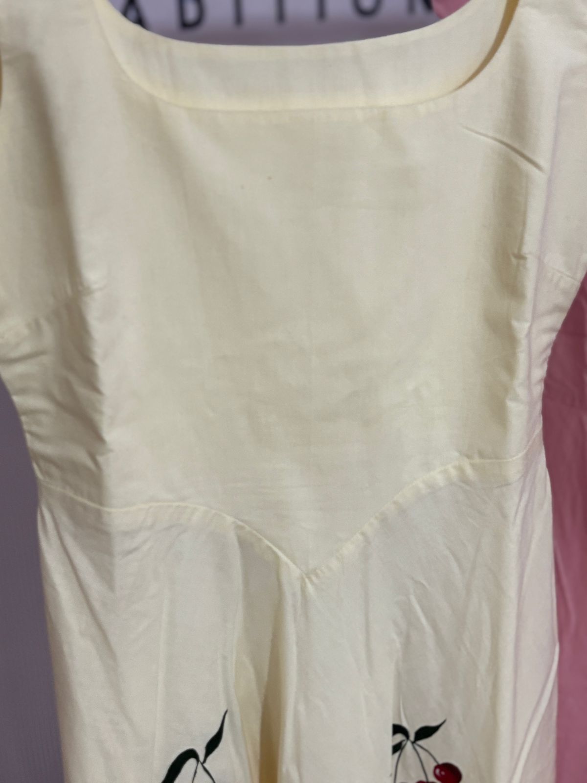 The flow of the dress adds effortless grace, while the hand-painted cherries bring a playful yet sophisticated charm. Perfect for daytime elegance or evening enchantment, this dress is more than clothing.