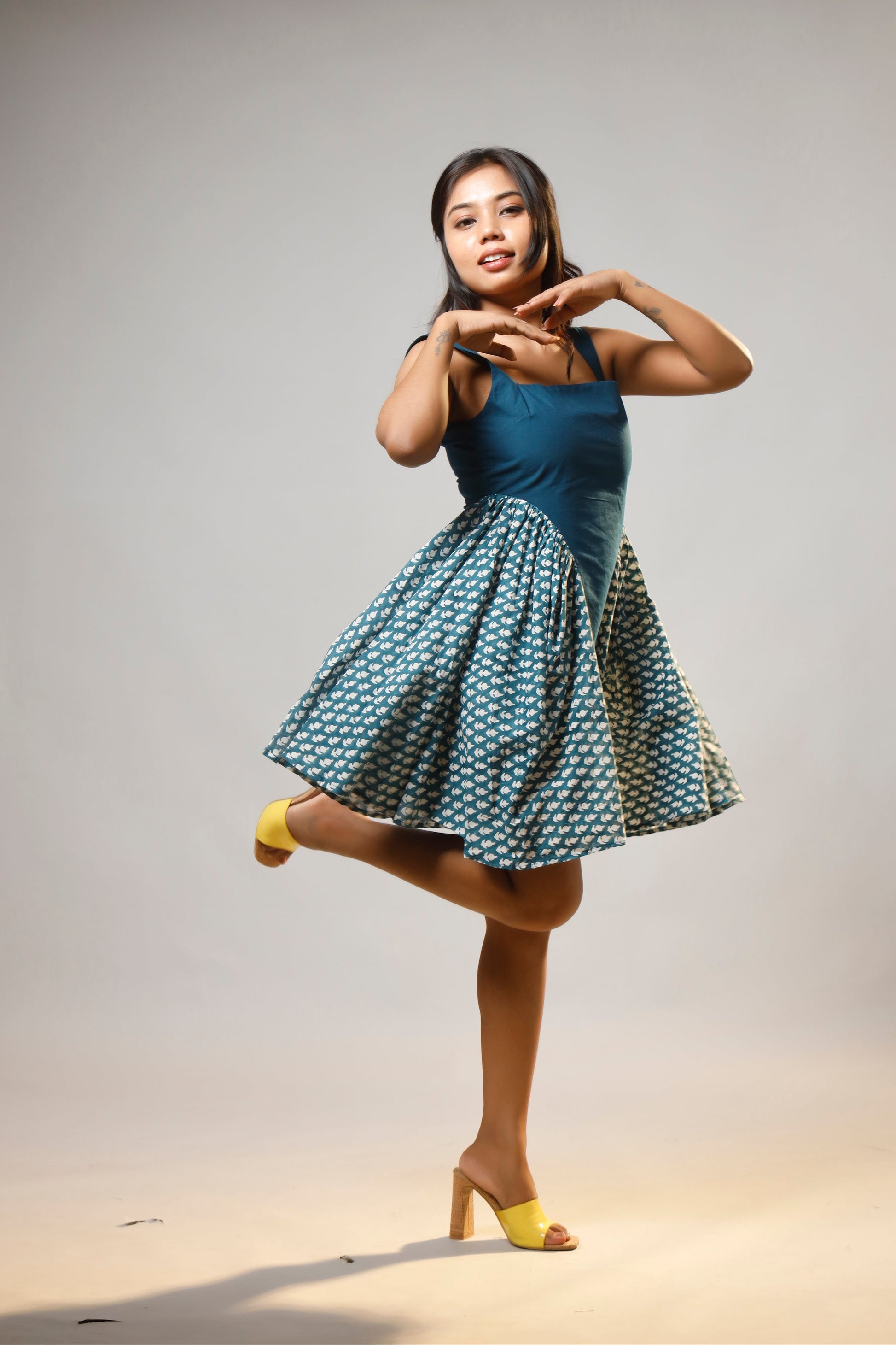 Turquoise Serenity Block Printed Short Corset Cotton Dress